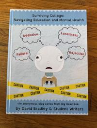 A copy of “Surviving College: Navigating Education and Mental Health” is pictured. The book, created by David Bradley’s brand Big Head Bob, focuses on mental health and education. (Courtesy/David Bradley)